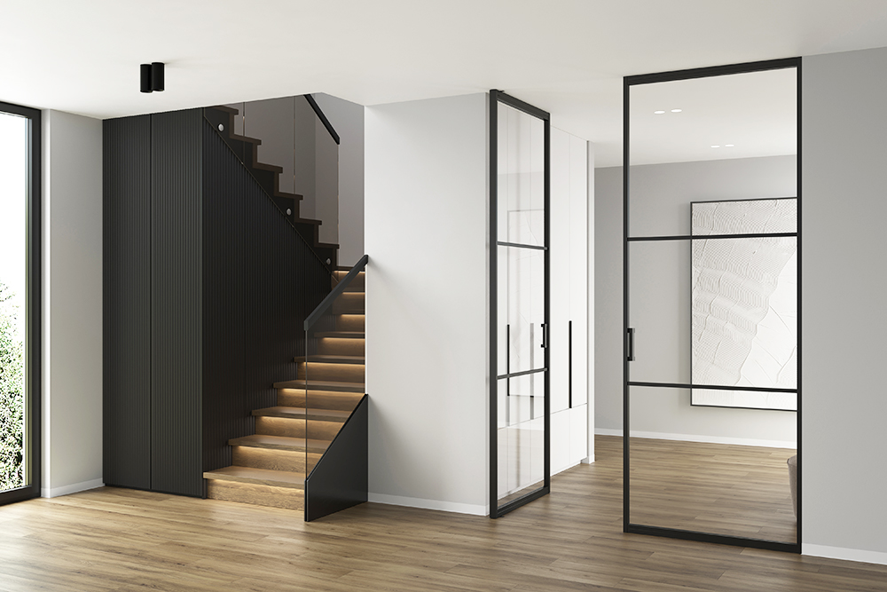 Двери Pivot идеально подходят для различных типов помещений благодаря своему уникальному механизму открытия. Эти двери могут быть установлены в комнатах со стандартными или увеличенными проемами, что делает их универсальным решением для любых пространств.